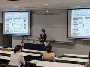 6月9日(水)2時限目「キャリアプランニング基礎演習Ⅰ」(1年生必修科目・基礎ゼミ)に、米国公認会計士(U.S.CPA)の阿辺聡先生をお招きして、「米国公認会計士(U.S.CPA)」資格の魅力、資格取得までの勉強方法や受験制度、合格後の働き方などについてご紹介いただきました。