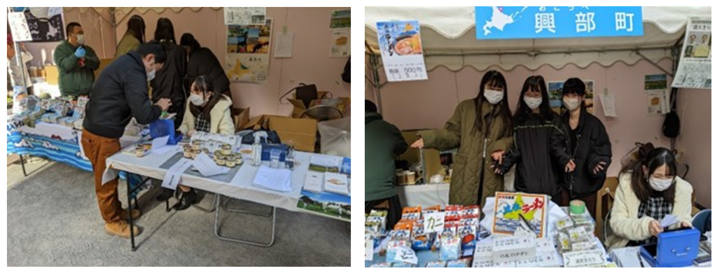 開催期間は2日間という短い中でしたが、初めての方々と商品を販売・接客対応等を行い、2日間とは思えないくらい非常に濃い時間を過ごすことができました。実際に商品を販売することの難しさや、普段ならばあまり関わることが難しい方々との交流、北海道にある様々な特産品の魅力など、学生である私たちにとっては味わうことのできない経験を積むことができたと思います。