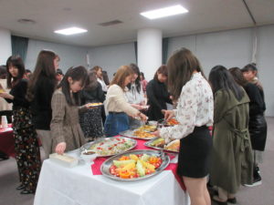 そして、4月3日(水)には17:30から学科主催の新入生歓迎夕食会が開催されました。この夕食会の企画と運営は会計ファイナンス学科2年生の有志メンバーです。新入生を歓迎するために、一生懸命準備してきました。