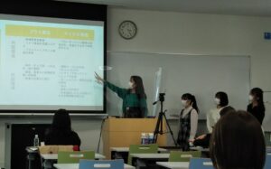 今回、私たちはビジネスプラン(以下、プランと表記)を2つ出すという恐ろしく大変な道を選びました。私たちのゼミは、5人しかいないため、グループを分けずに、全員で2つのプランの作業に関わる工夫をしました。全員が両方のプランに関わることで、1人ではなかなか思いつかない視点から改善点を見つけることができ、皆でより良くしていこうという気持ちが大きくなりました。正直に言うと、夏休みもほとんどない大変な作業でしたが、皆で辛いことも大変なことも共有しあえたからこそ、乗り越えられたと思っています。(芳賀鈴花)