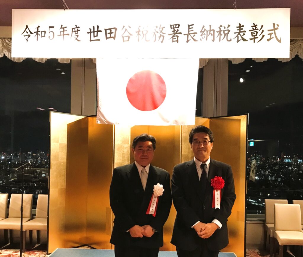 今回、加納先生は「租税教育の推進に努め、顕著な功績を挙げ、適正な申告納税制度の確立や普及発展、ならびに納税道義の高揚に顕著な功績を挙げた」として世田谷税務署長の納税表彰式で表彰状を授与されました。