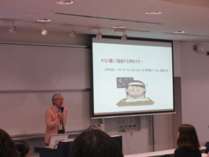 山田学科長による学科説明会。当学科では日々の地道な勉強が重要です!